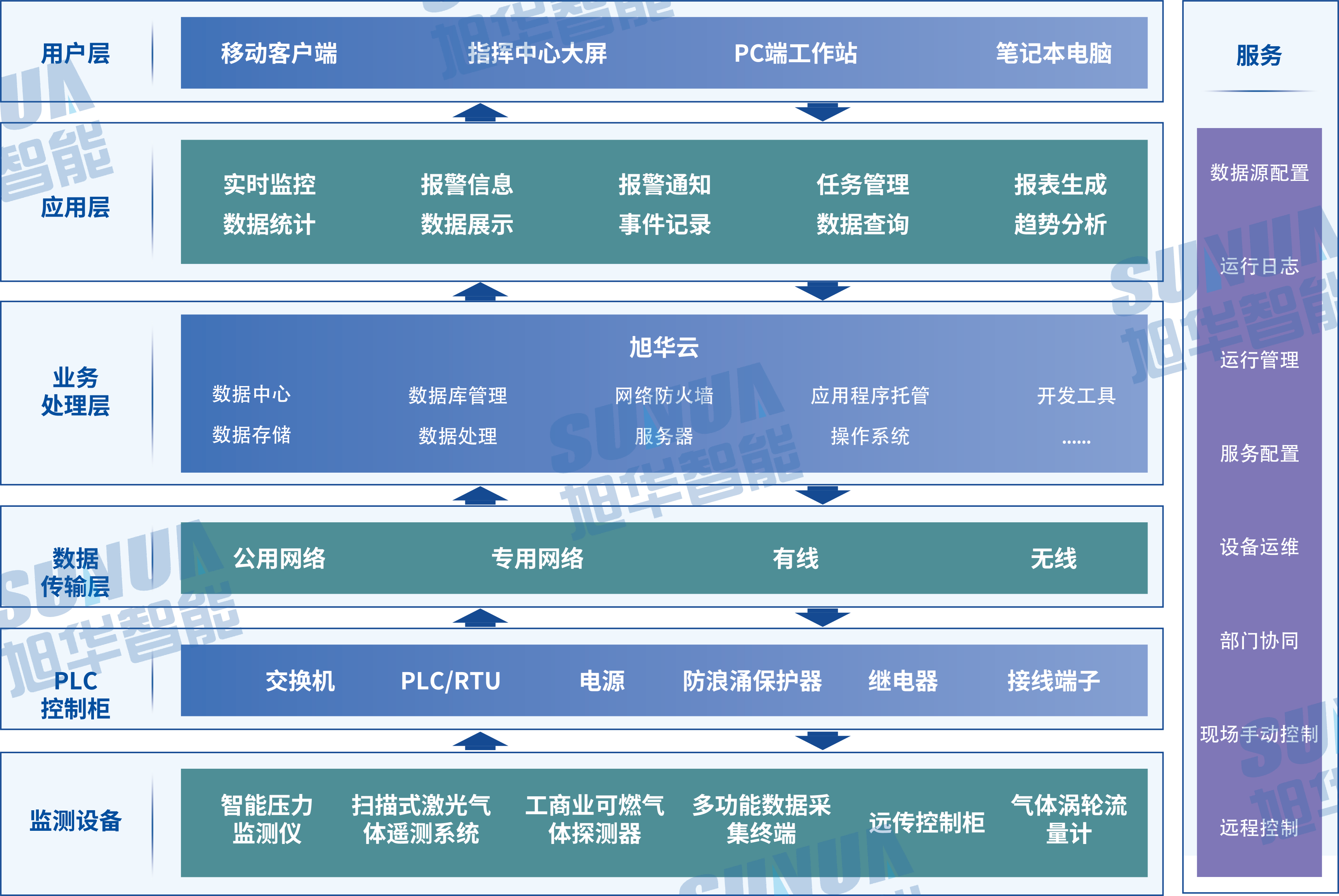 基于物联网技术,采用了“稳定、安全、数据传输迅速的网络技术”与“安全、成熟的工业自动化控制技术”,对场站及管网数据进行远传控制及视频监控安防的集成化控制系统。